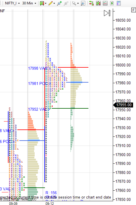NF had a long liquidation profile closing at dVAL in last session. If its just profit booking then expected NF to accept above 17910 to move higher further..Accepting in tail at low expected to get liquidation. NF got a slow drive early in session accepting above 17910 which pushed higher in first session to clear Aug high then towards close came down to close at dVAL.